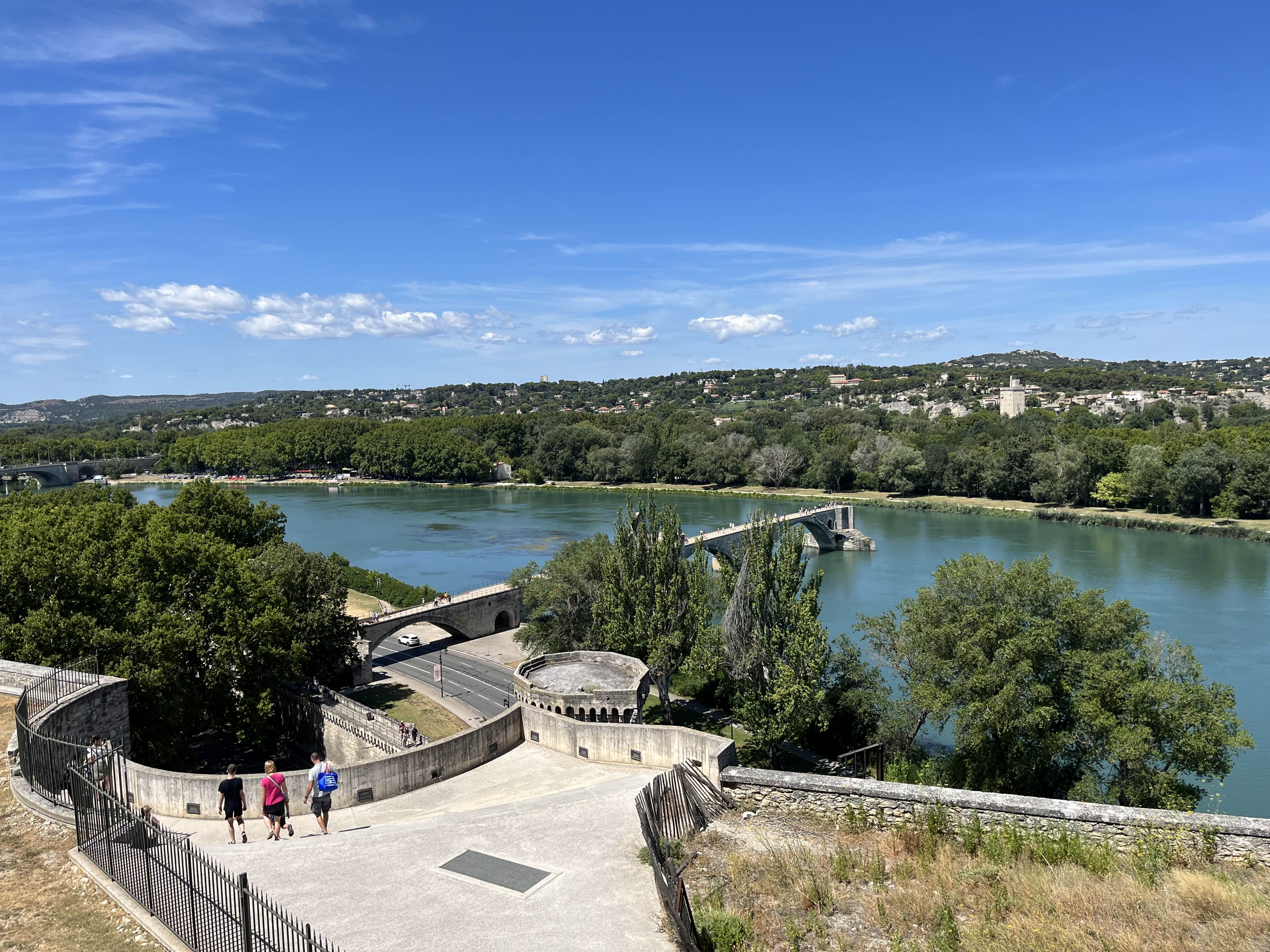중간에 보면 다리가 끊겨 있는 것이 보인다. 이 아비뇽 다리가 생기게 된 설화?도 재미있는데 양치기 소년이었던 베네제라는 사람이 이곳에 다리를 건설해야 한다고 주장하자, 사람들은 그럼 네가 지어보라고 했단다. 그래서 베네제가 큰 돌을 들고 성큼 성큼 가서 (유속이 빨라서 다리 짓기가 쉽지 않은 곳이라 한다) 큰 돌을 휙 던져 사람들에게 능력을 보여줬고, 추후 그는 성인이 되었다. 그래서 다리 이름이 아비뇽의 다리기도 하지만 생 베네제 다리이기도 한 것이다.