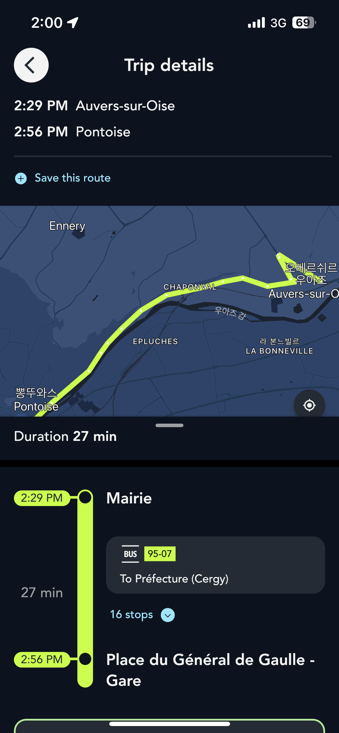 나는 Saint-lazare(한국발음 생 라자르, 구글 발음 생래자흐)에서 Pontoise(퐁투아즈)까지 가는 기차를 타고가서 갈아타기를 시도했다.